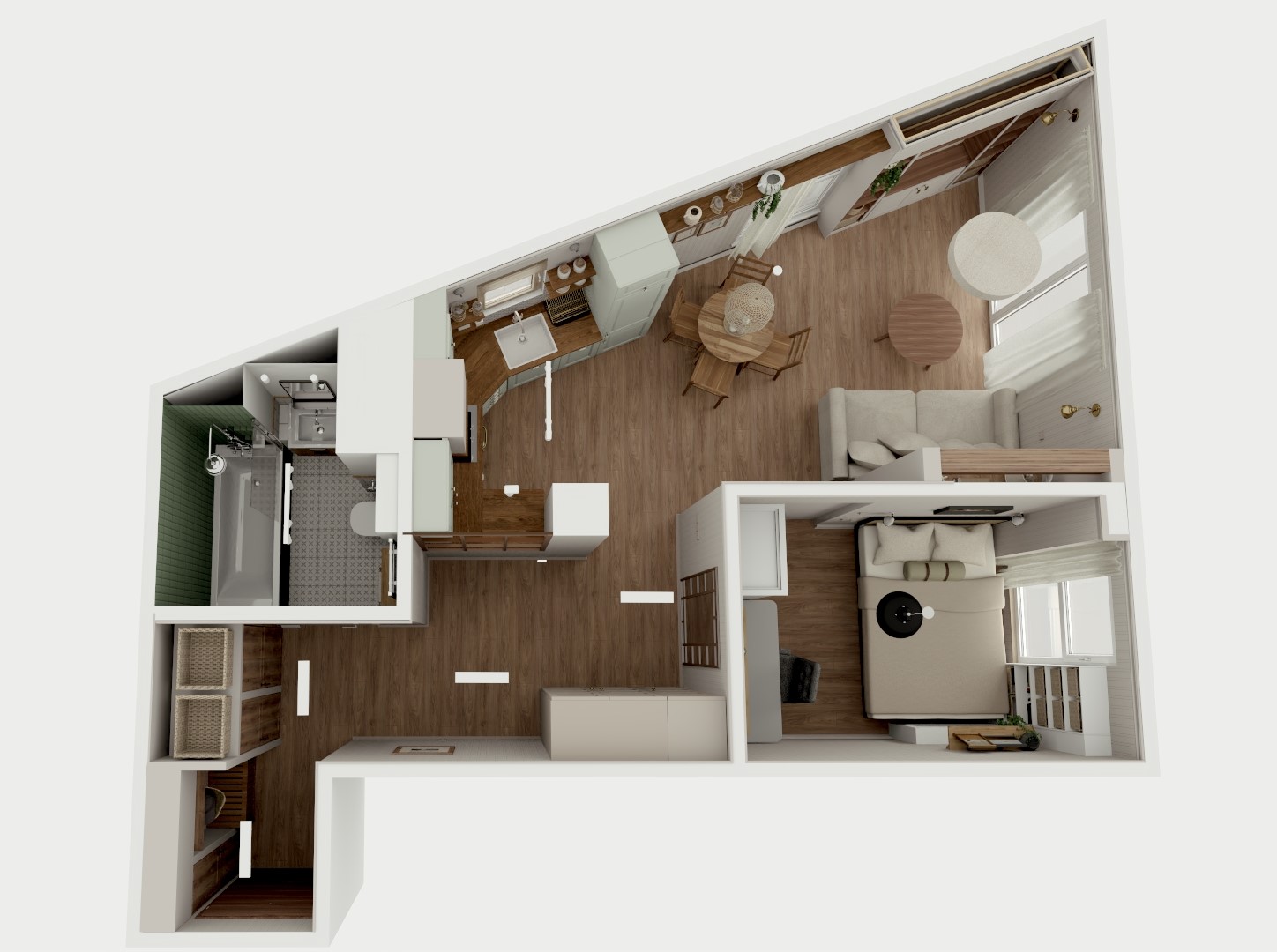 Mieszkanie w Krakowie o nietypowym kształcie – 40 m²